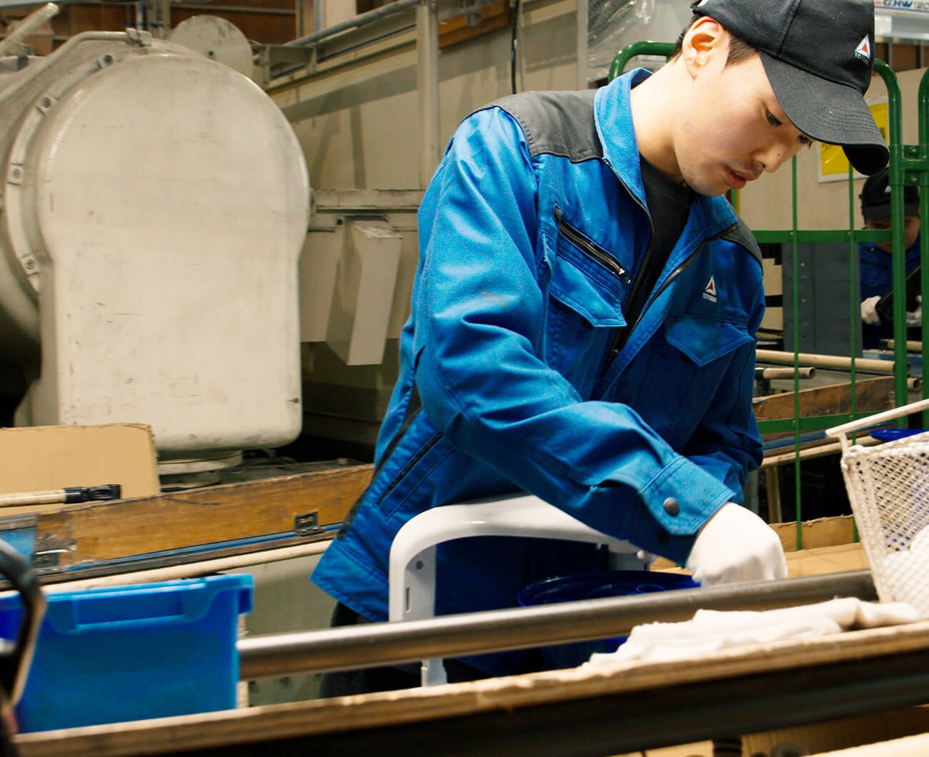仕事のこだわりは、自分が使った場所をきれいに保つこと。工場の中ではたくさんの人が作業をしているので、みんなが気持ちよく仕事できるように整理整頓を心がけています。